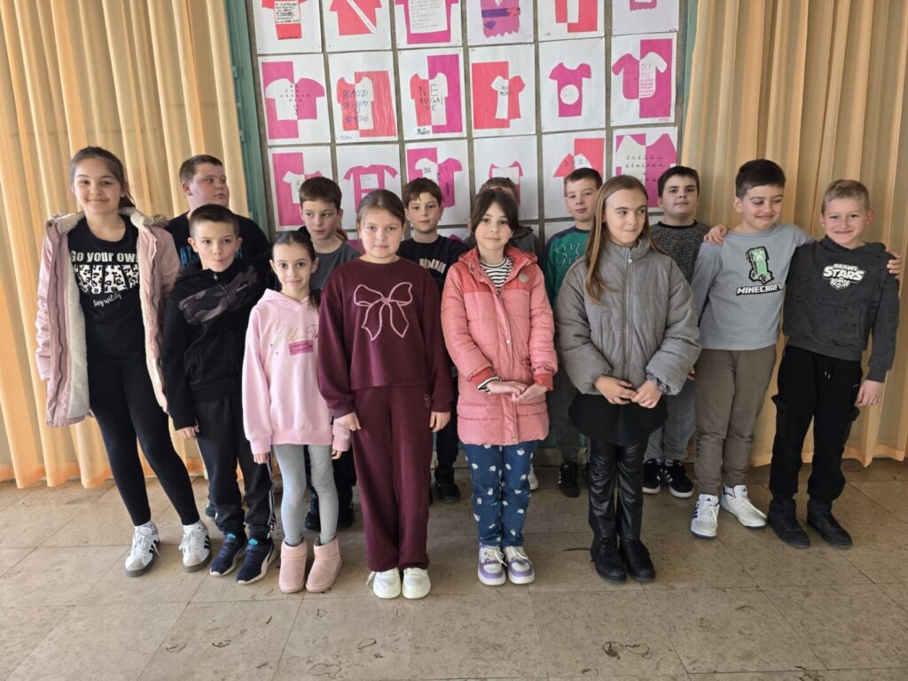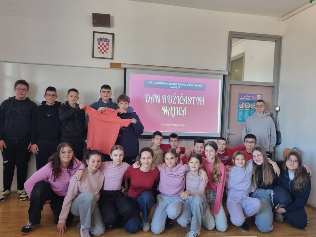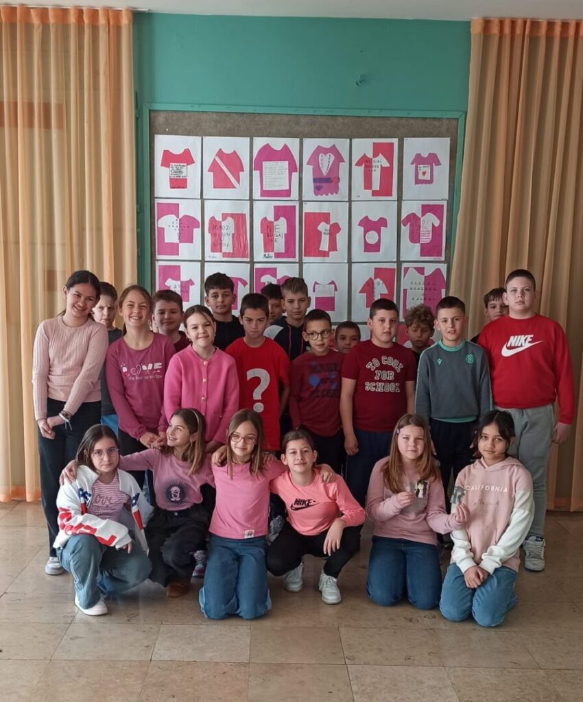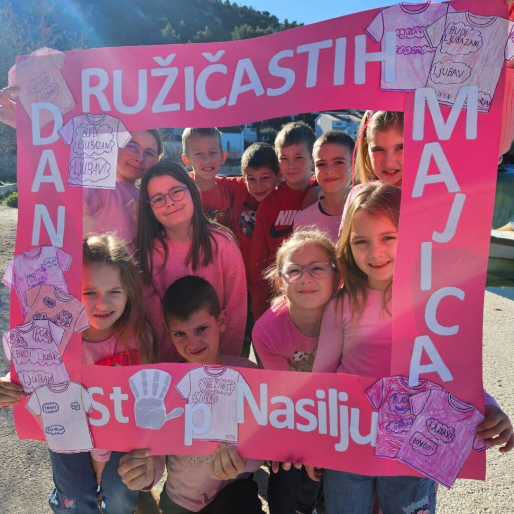 Oblačeći i ove godine ružičasto, naši su učenici i učenice, učiteljice, učitelji i djelatnici poslali poruku osude bilo kakvog oblika vršnjačkog nasilja i poruku spremnosti za borbu protiv nasilja.