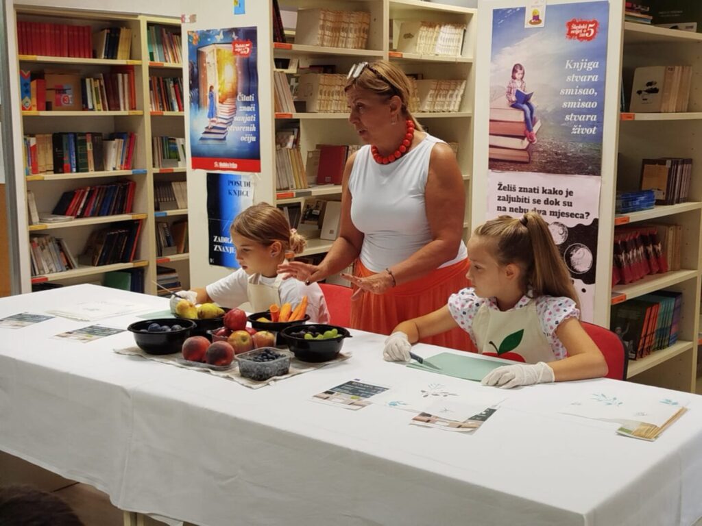 U školskoj je knjižnici u ponedjeljak, 15.rujna 2025.godine, održan sat kušanja voća i povrća i mlijeka te edukacija učenika u okviru EU programa Školska shema (Ministarstvo poljoprivrede, šumarstva i ribarstva).